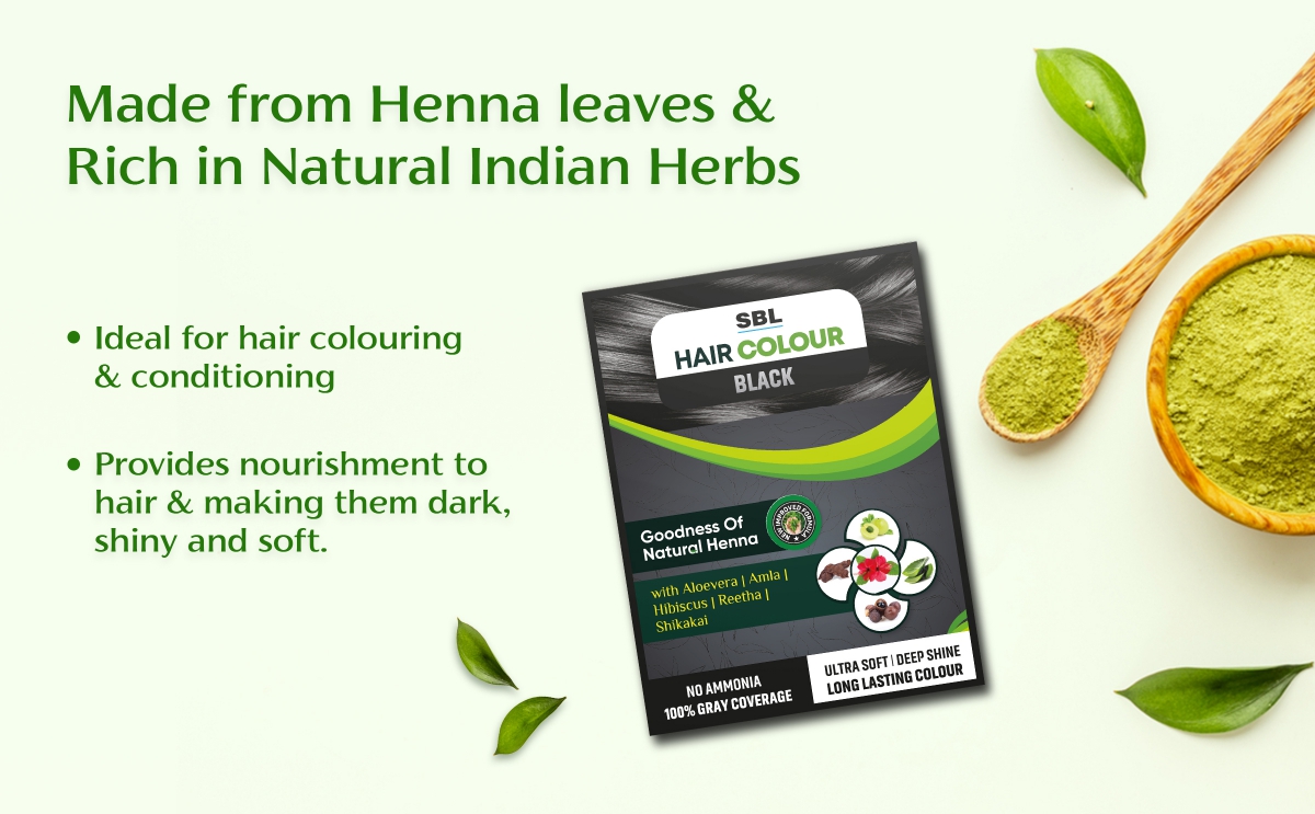 Sunny Herbals Hair Color Black is a unique blend of Henna and other essential herbs to color gray hair with the goodness of nature. It penetrates every strand and colors from root to tip giving a long lasting protection andbe total gray coverage. Sunny Herbals Hair Color black ingredients include henna to impart a deep color, amla to moisturize the hair, shikakai for softer hair and bhringraj which improves in the scalp and to the roots.