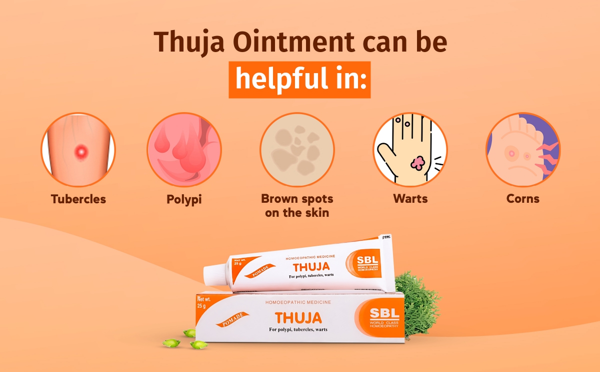 SBL Thuja Ointment is a carefully formulated homoeopathic ointment for warts and corns, helps to provide gentle yet soothing care for various abnormal skin growths