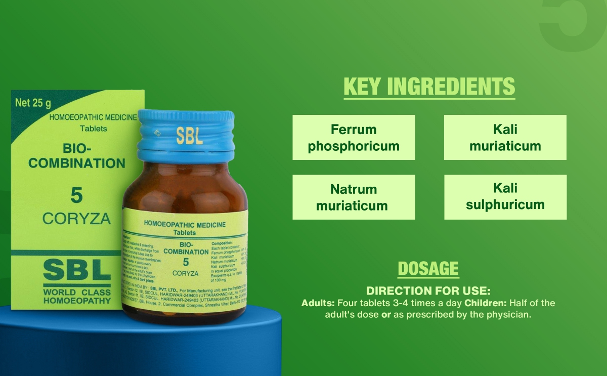 SBL Bio-Combination 5 is a valuable preparation in coryzal states presenting with catarrhal irritation of the nasal passages and upper airways.