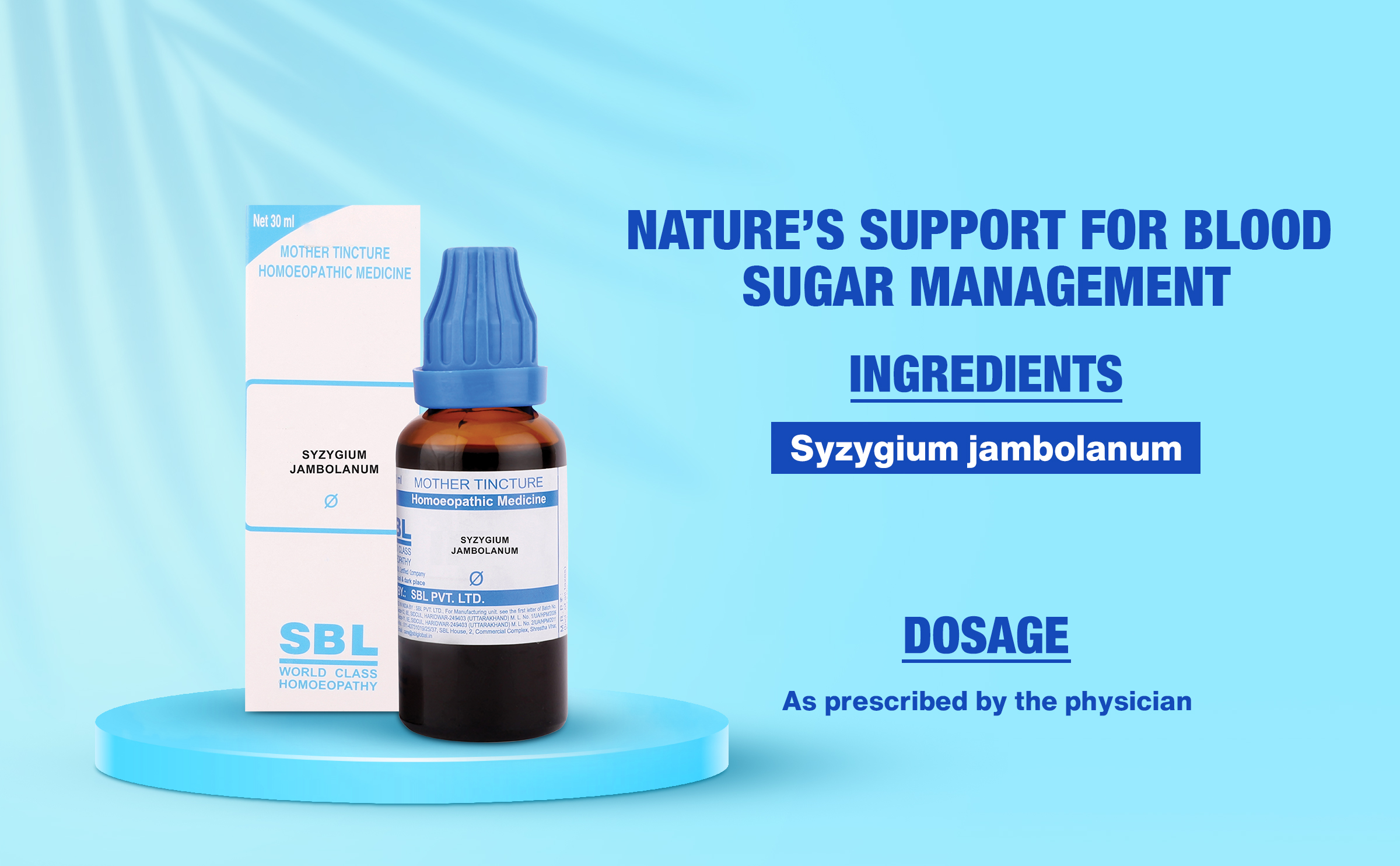 Syzygium jambolanum, commonly known as Jamun, is a homoeopathic medicine derived from the seeds of the Jamun fruit tree, native to India. Belonging to the Myrtaceae family, it has been valued for its role in managing blood sugar levels. In homoeopathy, Syzygium jambolanum is used to support pancreatic function, regulate glucose metabolism, and alleviate symptoms associated with diabetes. It is also employed to address conditions related to excessive thirst and urination.