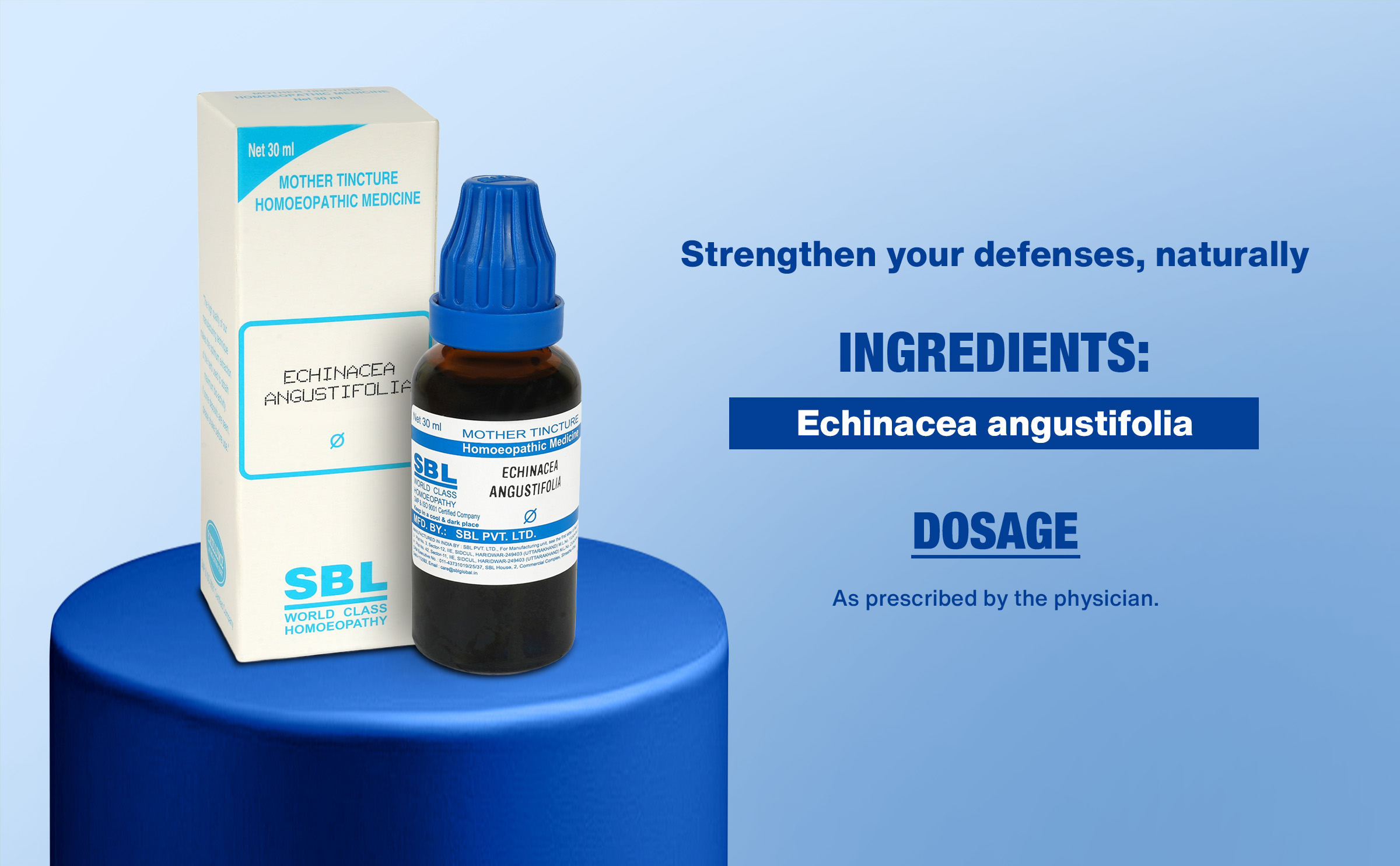 Echinacea angustifolia, commonly known as Purple Cone-flower, is a homoeopathic medicine derived from the roots of the Echinacea angustifolia plant. Belonging to the Asteraceae family, it has been traditionally valued for its therapeutic properties in boosting the immune system for treating infections, and supporting wound healing. In homoeopathy, Echinacea angustifolia is primarily used to address symptoms such as recurrent colds, flulike symptoms, and septic conditions. It is also employed for its effects on sore throat, swollen glands, and feverish conditions.