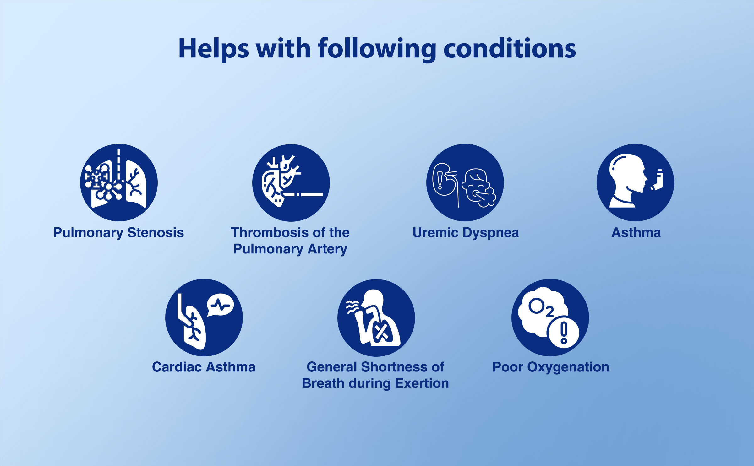 Helps in Relieves Breathlessness, swelling, regulates high raised temperature