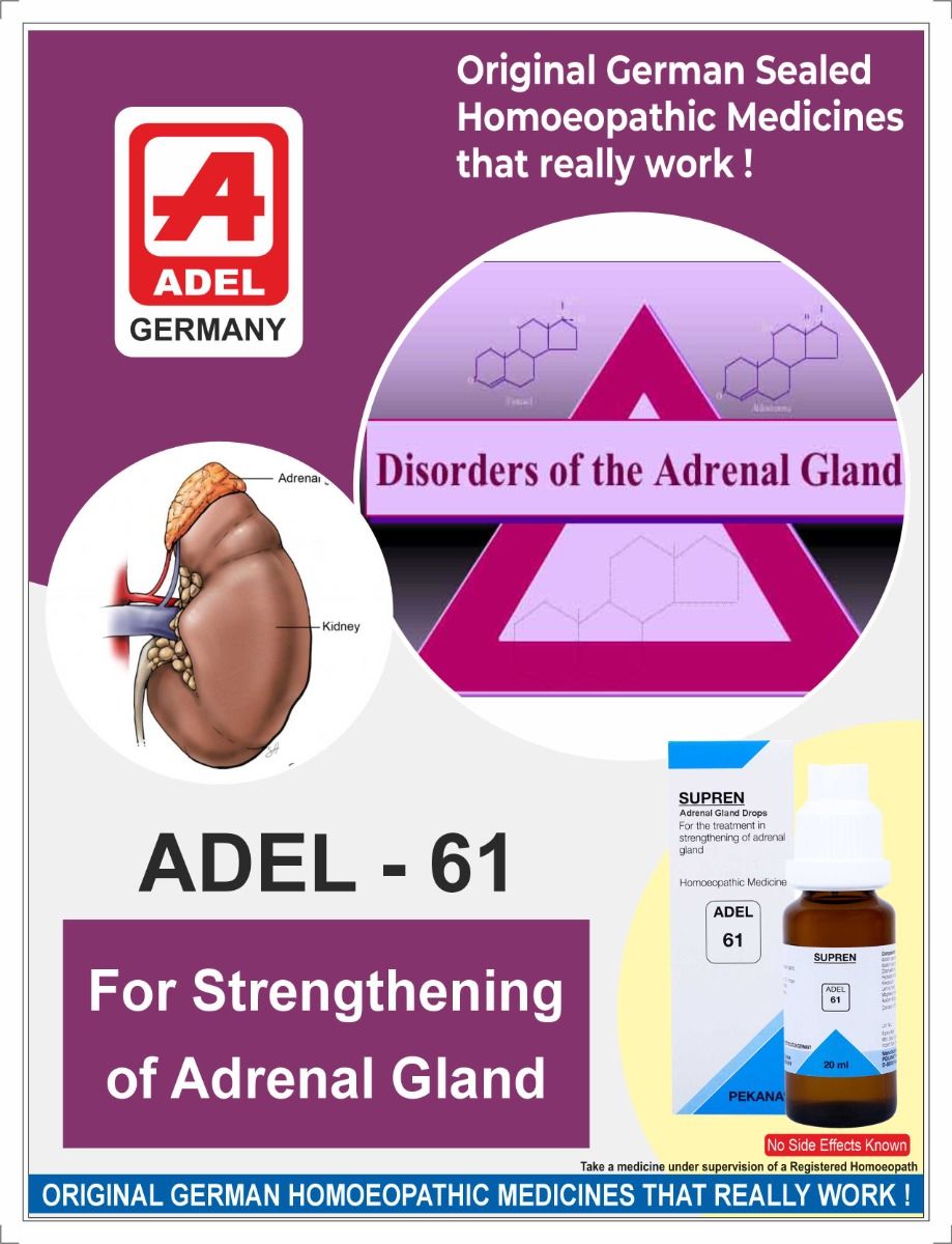 Adrenal fatigue due to dysfunction fo the adrenal glands is wide-spread in modern society. This condition can have severe implications for the health of the afflicted patient. As a result, it is imperative that adrenal fatigue and resistance be addressed with a natural remedy without any side effects. ADEL 61 (SUPREN) drops detoxifies, strengthens and regulates adrenal glands.